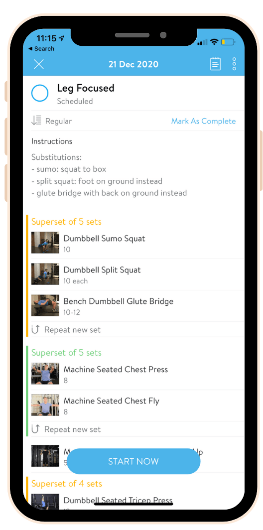log your workouts + progress over time while still having access to the description, videos, and me!